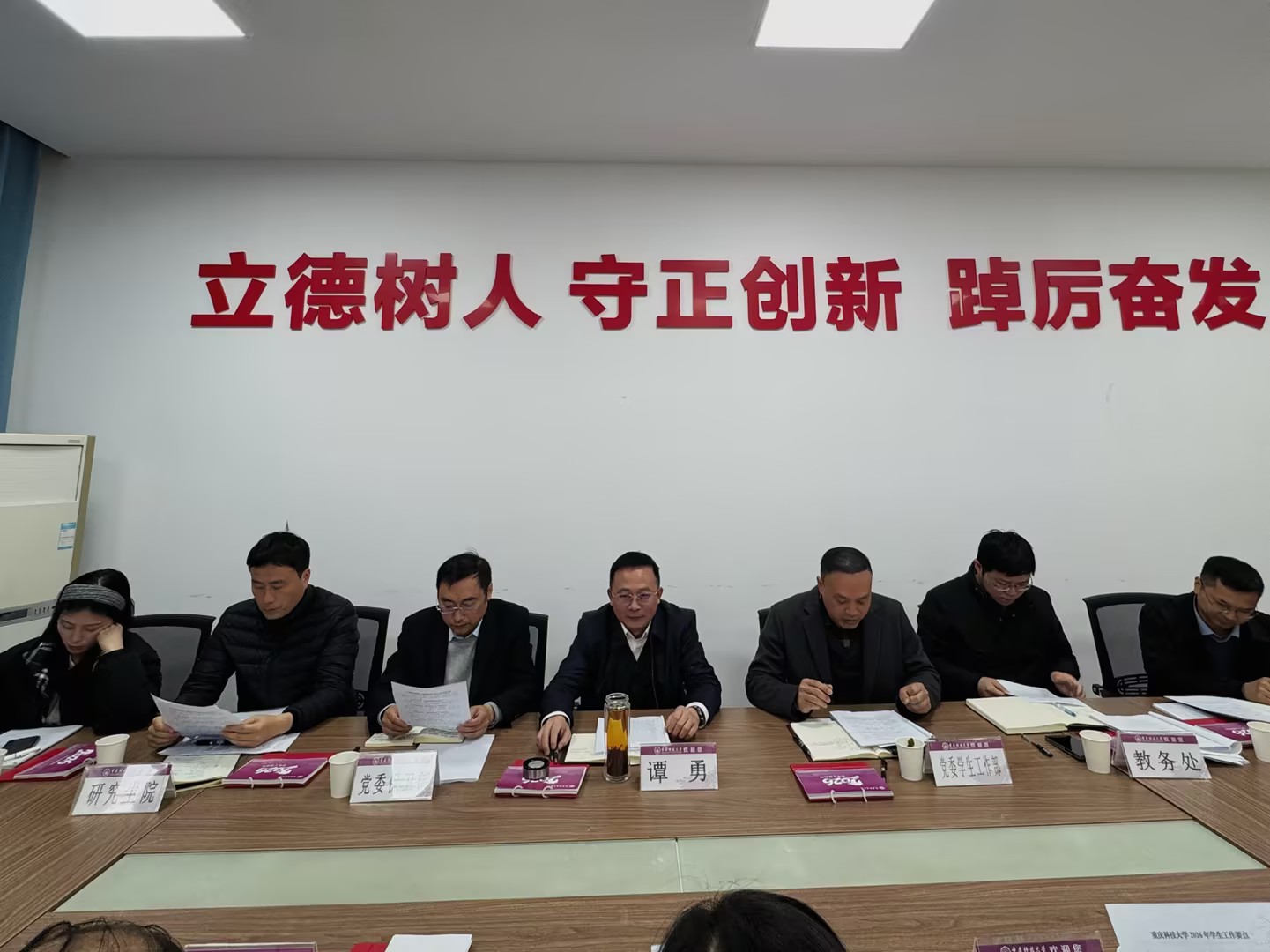 谭勇书记在总结讲话中充分肯定开学以来学生工作成效,对下一阶段重点任务提出明确要求。他强调,要坚守安全稳定底线,全面排查风险隐患;推动学工工作向规范化、特色化、素质化转型,打造重科育人特色品牌;强化部门协同,建立长效联动机制;树牢正确政绩观,狠抓工作落地、杜绝形式主义;加强辅导员队伍建设,完善培训体系、稳定年轻队伍;抓实心理健康教育,深化家校协同帮扶;转变教育观念,融入正确就业观引导,助力学生高质量就业。